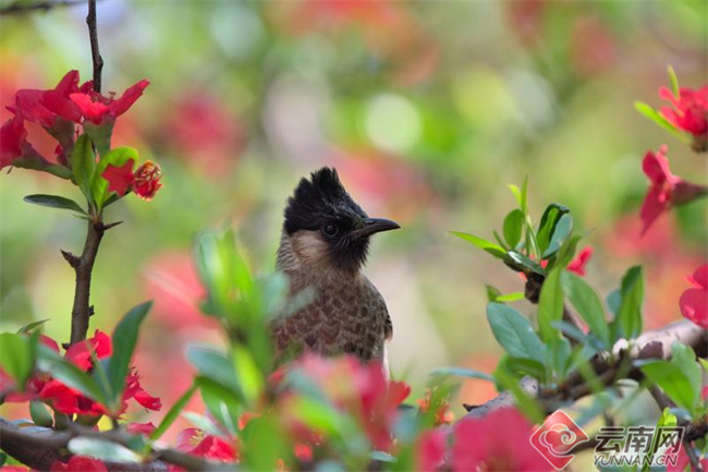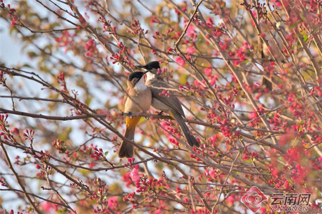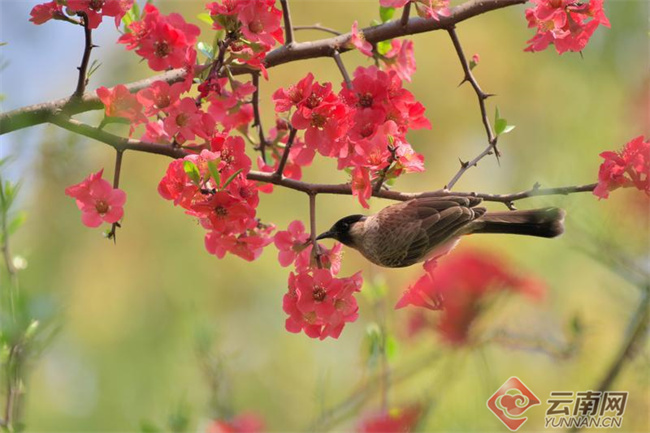 鸟喜欢春天的花,对花开的消息很是敏感,有的采蜜食花当“采花大盗”,有的为花捉虫当“护花使者”,还有的则是路过歇歇“到此一游”。无论是什么类型的鸟,都喜欢跳来跳去,一边美餐一边歌唱,让春天的世界充满欢乐。