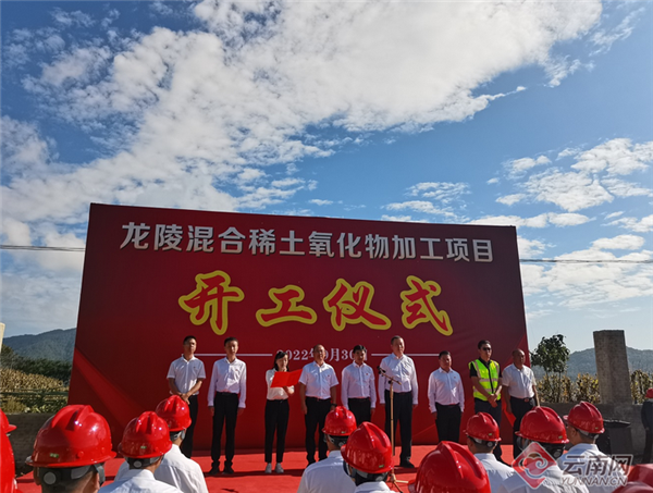 龙陵混合稀土氧化物加工项目总投资1.5亿元,规划用地约47亩,项目达产后预计每年可实现产值10亿元,上缴税收2000万元以上,同时可解决就业60人以上。项目签约以来,龙陵县及时组织项目服务专班,超前谋划、通力合作,主动帮助企业理清项目落地前的各项流程,协助企业排出时间表、制定路线图、明确任务节点,责任包干到人,聚焦问题逐项销号、聚焦落地要素逐项推进,项目于9月30日正式开工建设,力争年内实现投产。
