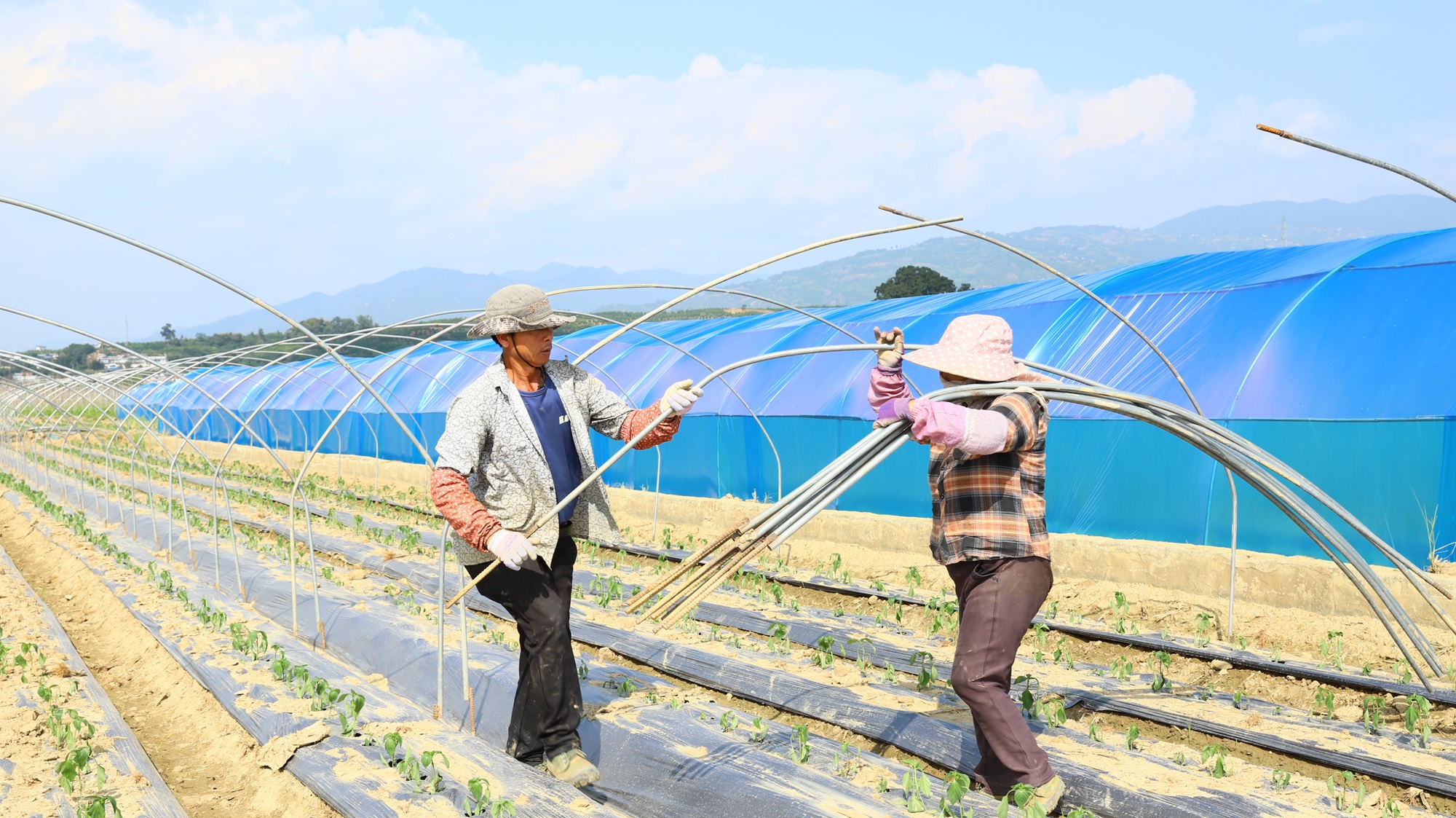 “这两天趁着晴好天气,忙着种菜。我家今年种植辣椒4亩、豆子5亩,还种了西葫芦3亩,希望今年能有个好收成。”芒赖村种植户万杏美正在地里移栽辣椒。