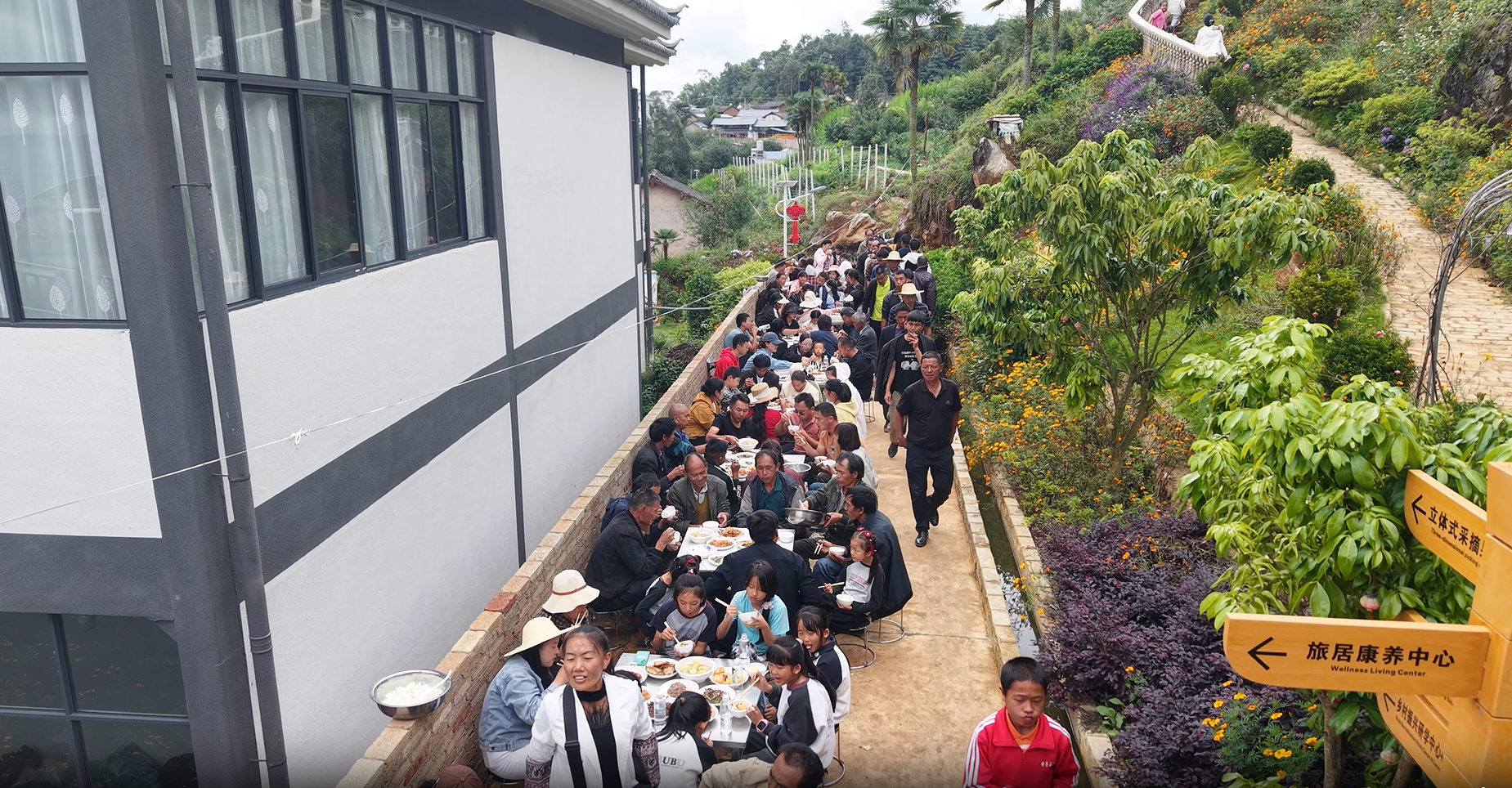 舌尖上的乡愁,长桌宴连接人与情。数十张桌子连成长龙,宛如一条蜿蜒的“美食巨龙”。游客并肩而坐,品尝着当地特色美食,尤其是那碗香味四溢的肉圆子,承载着代代相传的乡村烟火气。在轻松愉快的用餐中,人与人之间的距离悄然拉近。