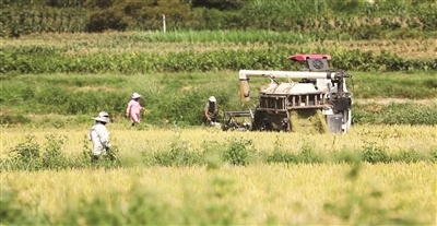 走进何光龙家的繁育田里,沉甸甸的稻穗压弯了稻秆,连片的稻田被染成金色,不远处机声隆隆,到处都是工人们忙碌的身影,收割、装袋、拉运每一个环节都井然有序。何光龙从事水稻亲本繁殖7年,凭借丰富的经验,他把自家的基地打造成了当地的高产样板。
