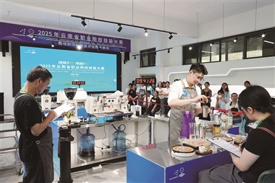作为“中国咖啡之都”,保山的“咖啡冲泡与品鉴”赛项无疑是全场焦点。赛场内,浓郁醇厚的咖啡香气层层弥漫,选手们神情专注,指尖精准把控水温、水流与萃取时间,每一次轻柔注水都如同雕琢艺术品。一旁的评委手持杯盏,逐项进行细致评判。这场比拼,不仅是技术的较量,更是一种对风味极致的感知与追求。