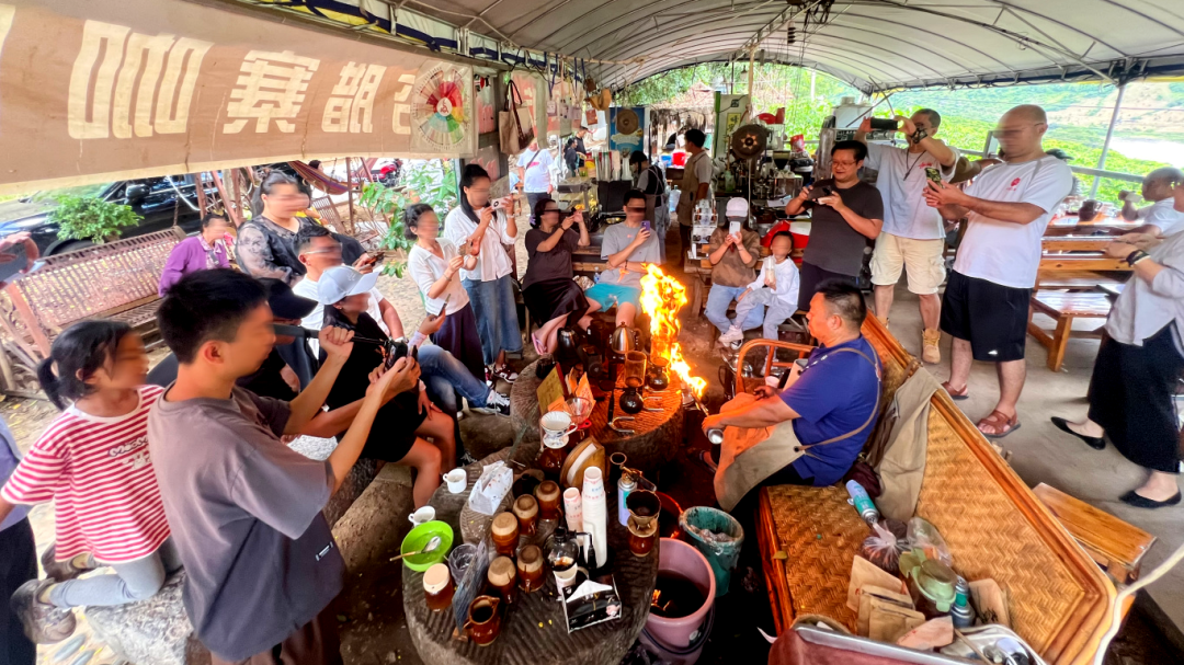 “火烧咖啡”制作现场吸引了众多游客
