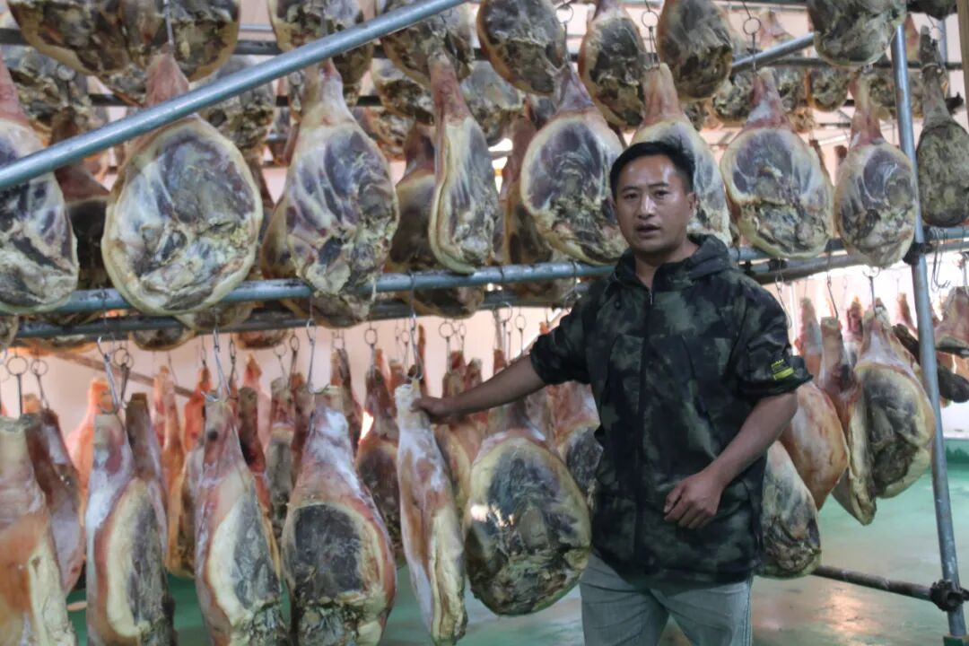 2022年,杨世李成立合作社,与200余户农户签订保底收购协议,带动该村生猪养殖规模从户均2头增加到10头以上。2023年,他开通“杨二哩火腿”直播带货平台,每年销售火腿1万余只。合作社成立至今,已累计实现收入600余万元,村集体增收50余万元。