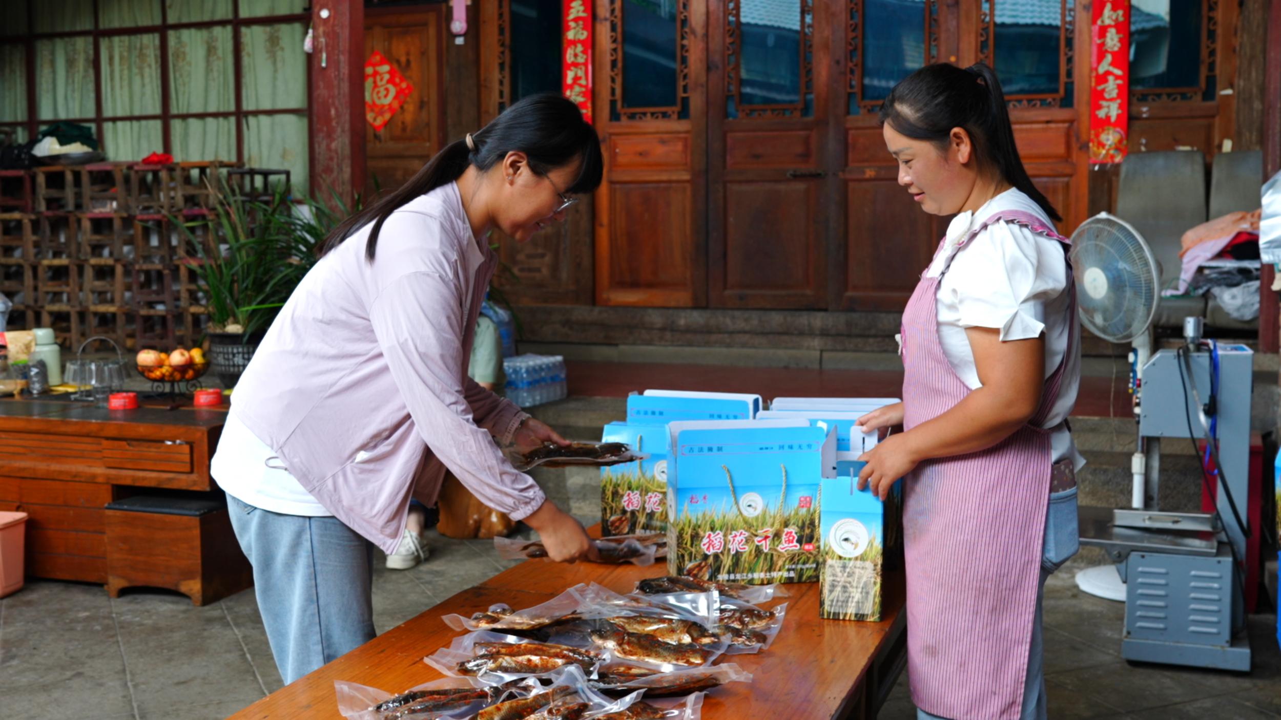 游客宝笠元对鱼干赞不绝口:“稻花鱼干和普通煎炸鱼味道完全不同,煎着吃特别香,保存也方便,每次来都要带几包回去。”