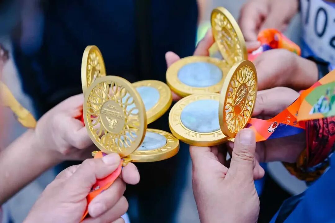 本届“腾马”持续深耕“唤醒心中的英雄”这一核心文化IP,巧妙将腾冲深厚的“英雄”底蕴与马拉松挑战极限、超越自我的精神相融合。参赛者在奔跑中感受这座城市的英雄记忆与人文温度,也唤醒了自己内心的英雄梦想,形成了独具腾冲辨识度的赛事文化符号。奖牌设计同样颇具匠心——以腾冲传承六百余年的翡翠文化为灵感,采用“金镶玉”工艺打造完赛奖牌,将体育荣誉与地方特色产业相融合。这份饱含诚意的完赛礼,不仅让选手收获了沉甸甸的成就感,更成为赛事口碑传播的亮点,实现了体育竞技与地方产业发展的良性互动。