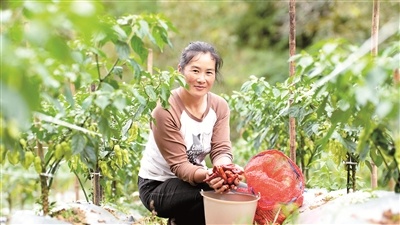种植户李金玲展示采摘的辣椒。杨冲楷 摄