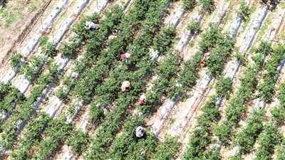 俯瞰种植户采摘工业辣椒。杨冲楷 摄