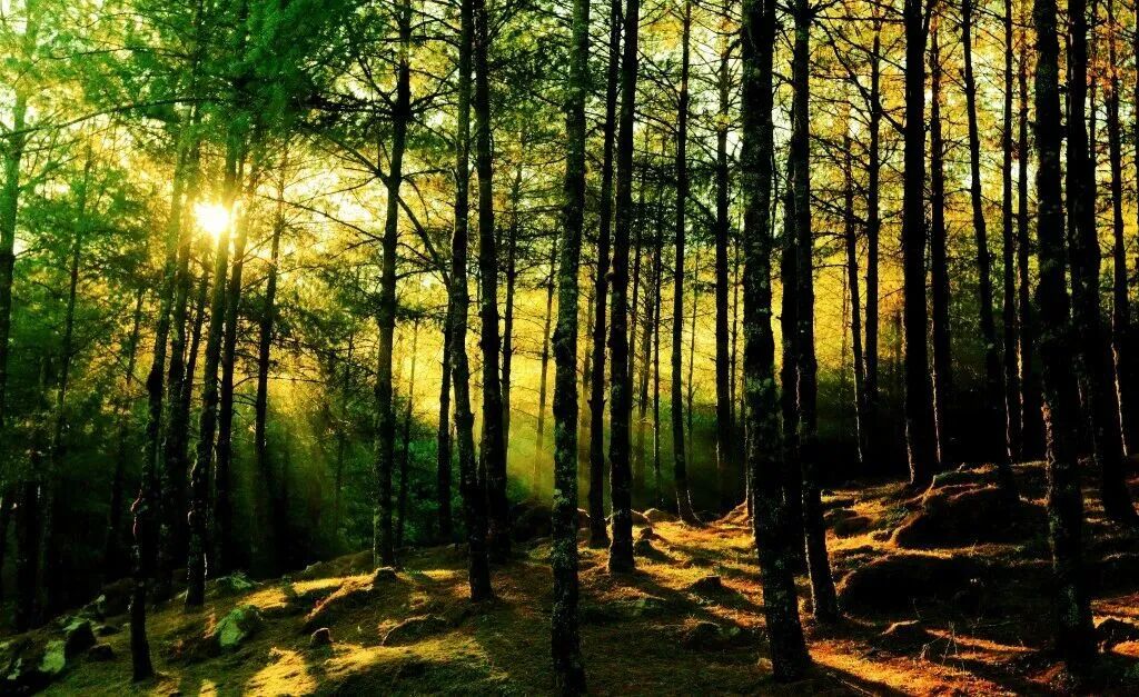 六点钟,光线从最高处的云南松开始,一寸寸地向下移动——点亮阔叶,照亮蕨丛,最后停留在厚厚的苔藓上。