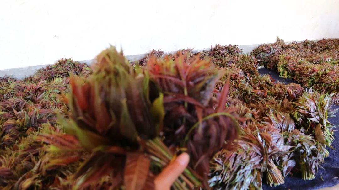 怀揣着这份期许,杨光强从2025年年初着手谋划,2月份精选优质种苗,正式启动110亩四季红油香椿的种植工作。种植过程中,他格外注重科技投入与科学管理,全程严把育苗、施肥、病虫害防治等关键环节,通过精细化管护筑牢香椿品质根基。功夫不负有心人,杨光强的辛勤付出终究迎来回报。