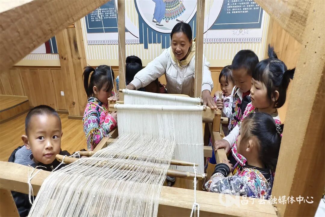 在幼儿园里,铁美兰不仅教授普通话、启蒙数字认知、播撒爱国种子、培育良好习惯,更将一份深沉的文化自觉融入教学——她把国家级非物质文化遗产“苗族服饰”的传承与保护,带进了孩子们的课堂。