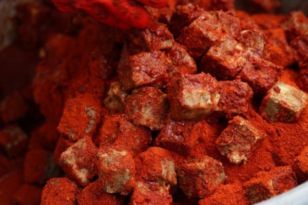 大田坝腌豆腐的制作,恪守着流传百年的古老技艺,其精髓在于“自然”与“耐心”。在长达数月甚至更久的静置封藏中,香料的味道丝丝渗透,豆腐的质地与口感也随之悄然转变,逐渐形成咸鲜香辣层次分明,且口感绵密中带着微妙颗粒感的独特风味。