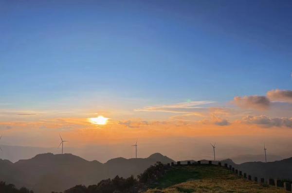 下山时,夕阳正为群山镶上金边。风车的影子被拉得很长,草皮街的炊烟与山雾融为一体。我终于懂得,四大山最美的从来不仅是云雾日出、森林草场,而是云雾下的炊烟、日出时的劳作背影、山货街上那双粗糙而温柔的手,以及接过山货时那份掌心相对的暖意。
