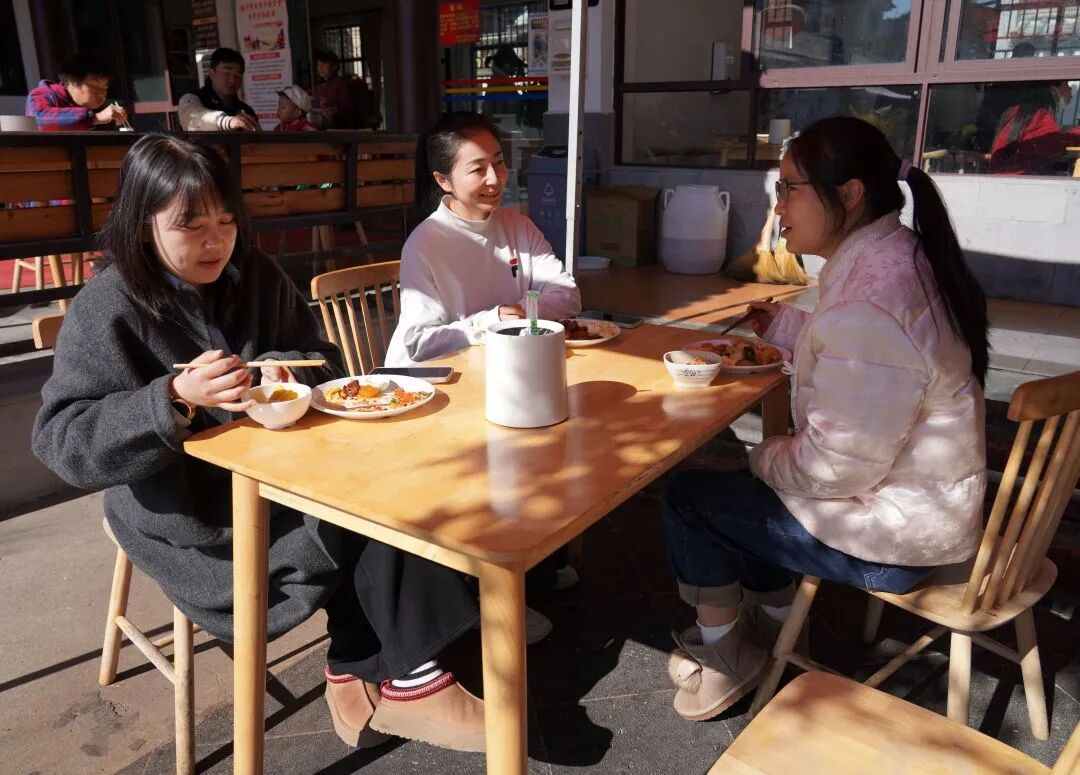 “和老伴商量后,我们决定在腾冲定居。现在我的呼吸道问题全好了,平时有时自己做饭,有时也出来吃。一次在抖音看到文星社区的幸福食堂,就抱着试试的心态过来,没想到菜品丰富、价格实惠,很多菜都合我们口味,之后就成了常客。这儿环境也舒服,我们挺喜欢的。”