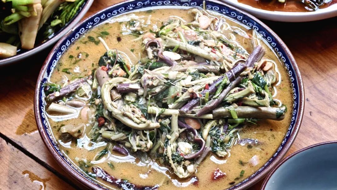 以腊肉同炒,烟熏的丰腴醇厚便包裹住山野的清鲜;用米汤慢烩,稠润甘甜渗入蕨菜肌理,再撒一把翠绿茴香,入口滑糯香暖,如农耕家庭最温柔的慰藉。