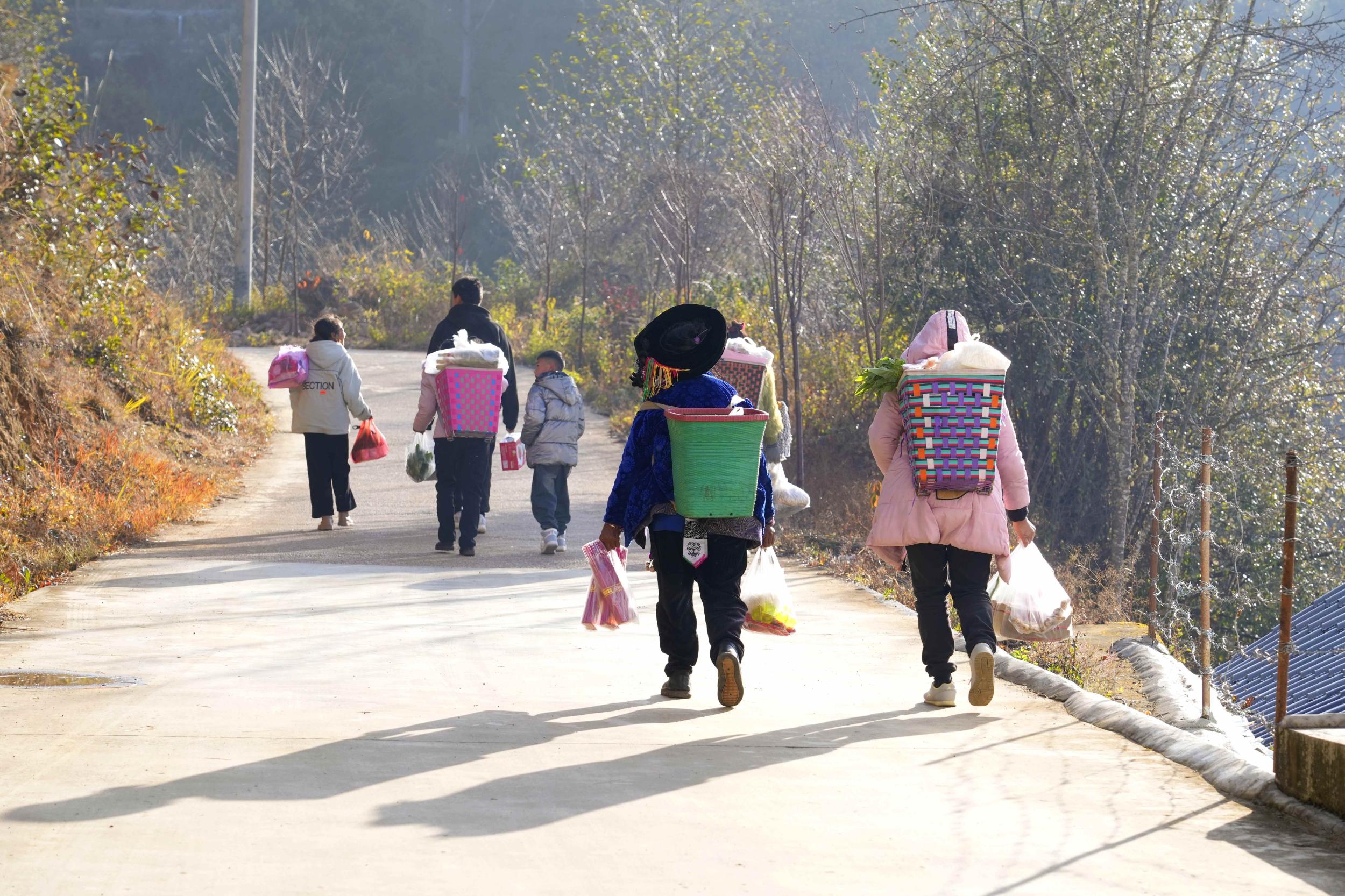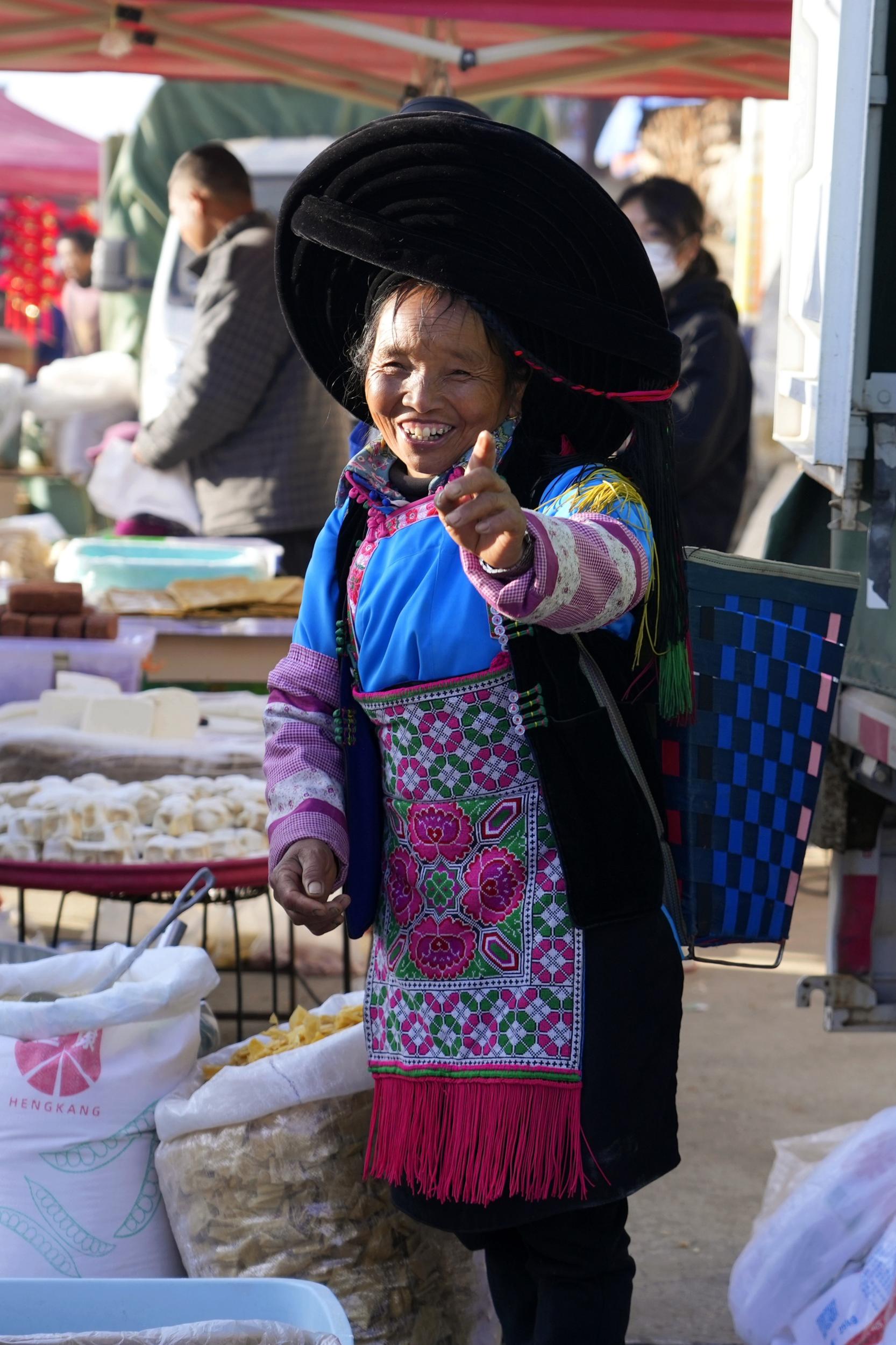相较于板桥早市的温润,杨柳白族彝族乡的春日山街子更添了几分民族风情与山野意趣。每逢街子天,市集依山势铺开,各种色彩肆意铺展:翠绿的鲜蔬、火红的草莓与泡椒、金黄的红糖与玉米粑粑,搭配白族阿妈绣的彩色头帕、彝族阿叔的粗布马褂,构成了独有的春日色彩美学。身着民族服饰的乡亲穿梭其间,叫卖声、谈笑声、孩童嬉闹声汇成热闹的乡村交响乐,小吃摊的热气、竹编器具的质朴、手工刺绣的精巧,每一处都透着乡土温度,既是物产交易的场所,更是民族文化交融的天地。