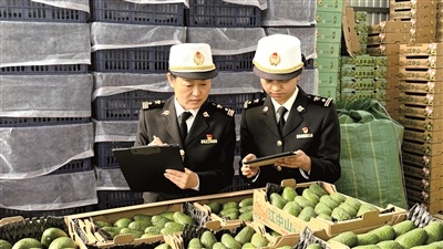 12月23日,腾冲海关驻隆阳办事处对龙陵县即将出口的牛油果开展现场查验,这批共计312箱、1248千克的牛油果将于近日从昆明长水国际机场发往新加坡、马来西亚。