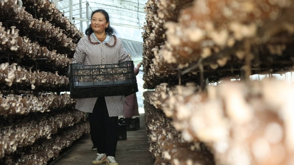 “我在这里认领了14个大棚,毛收入有12万元,扣除工人工资后,自己有8万元的纯收入。”杨雪梅笑着说,“种香菇真不错,在家门口就能挣到钱。”