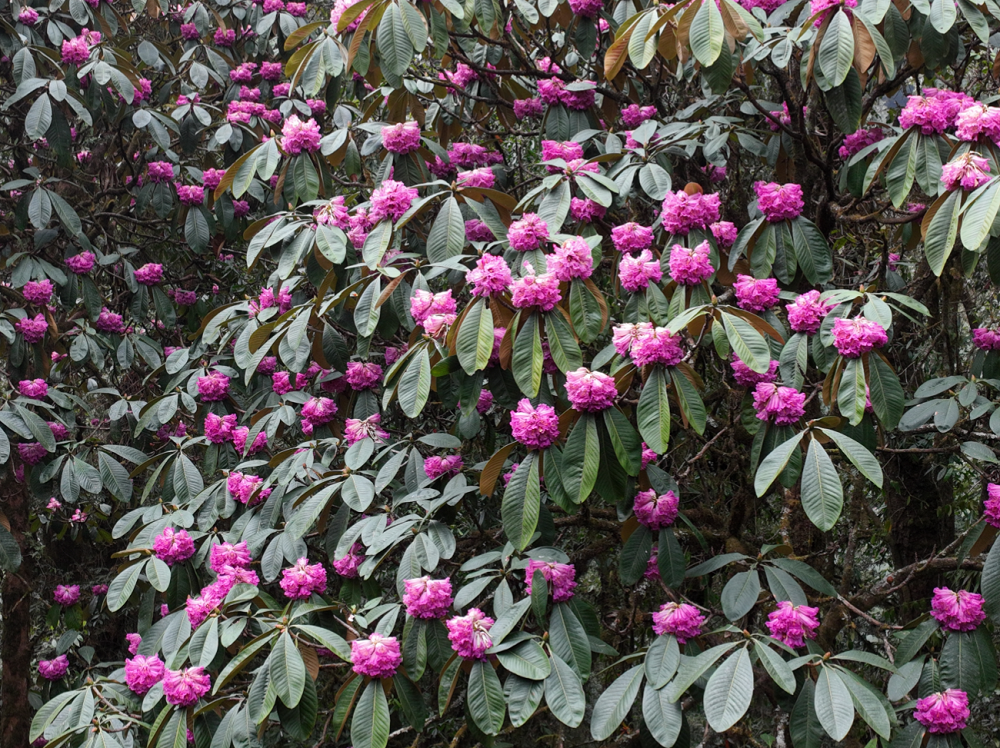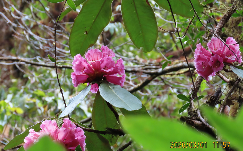 可喜的是,位于大塘管护站辖区的知名“杜鹃王”依然生长健康。该树位于海拔2378米处,树高29米,基部直径超过3米,现存两个主枝枝繁叶茂,长势良好。此外,自治管护站辖区新记录大树杜鹃694株,进一步丰富了该物种的分布数据。